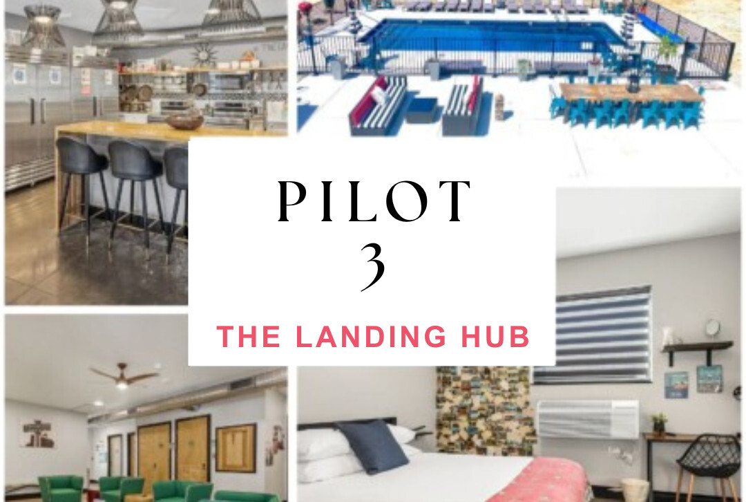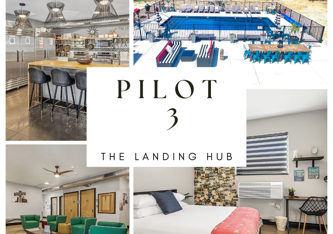 Queen room for two with community kitchen and coffee/tea bar at The Landing Hub Hotel. Dog-friendly.
