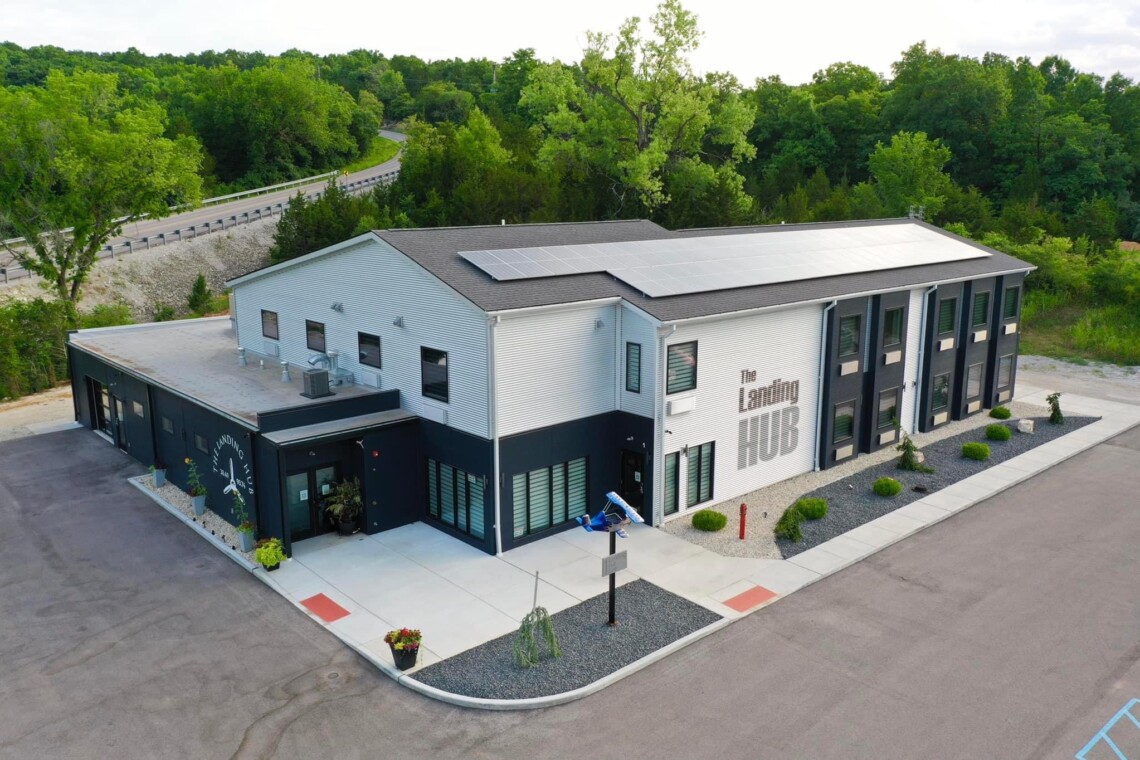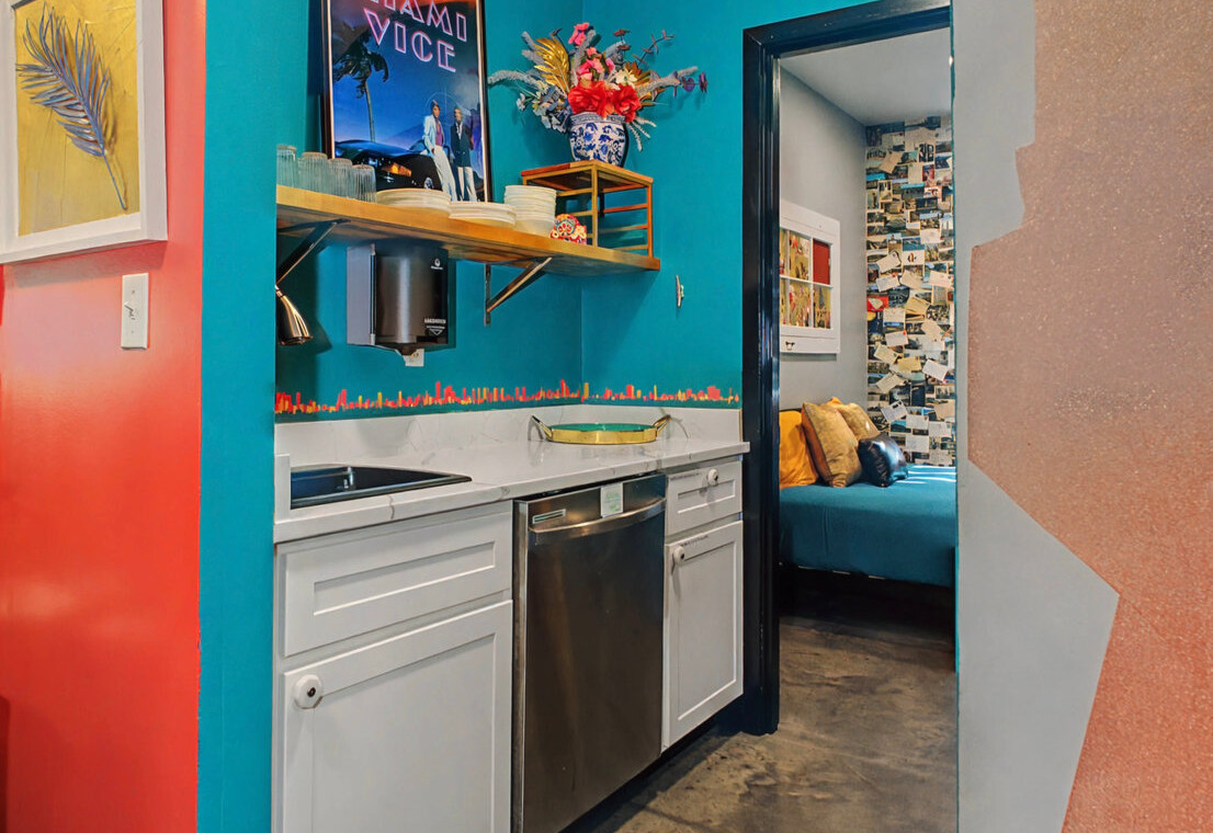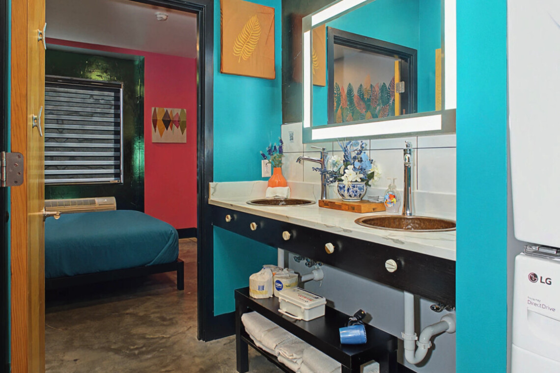 Pet-friendly family suite west of St. Louis with pool at The Landing Hub Boutique Hotel.